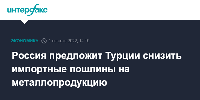 Россия предложит Турции снизить импортные пошлины на металлопродукцию