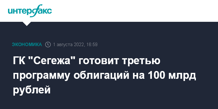 Москва. 1 августа. INTERFAX.RU - Совет директоров ГК "Сегежа" утвердил программу биржевых облигаций серии 003Р объемом 100 млрд рублей, сообщила компания.