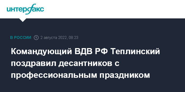 Командующий ВДВ РФ Теплинский поздравил десантников с профессиональным праздником