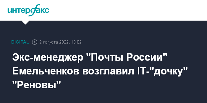 Экс-менеджер "Почты России" Емельченков возглавил IT-"дочку" "Реновы"