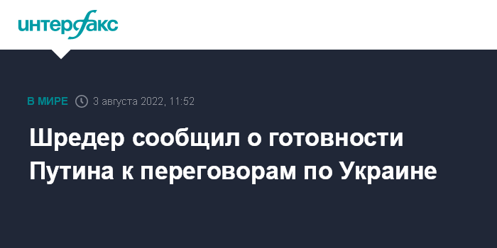 Шредер сообщил о готовности Путина к переговорам по Украине