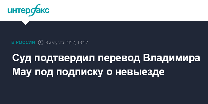 Там объяснили, что 3 августа в суд поступило заявление от следователя ГСУ ГУ МВД по Москве с просьбой не рассматривать ходатайство о продлении Мау домашнего ареста, поскольку ему изменили меру пресечения на подписку о невыезде и надлежащем поведении.