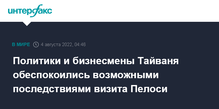 Политики и бизнесмены Тайваня обеспокоились возможными последствиями визита Пелоси