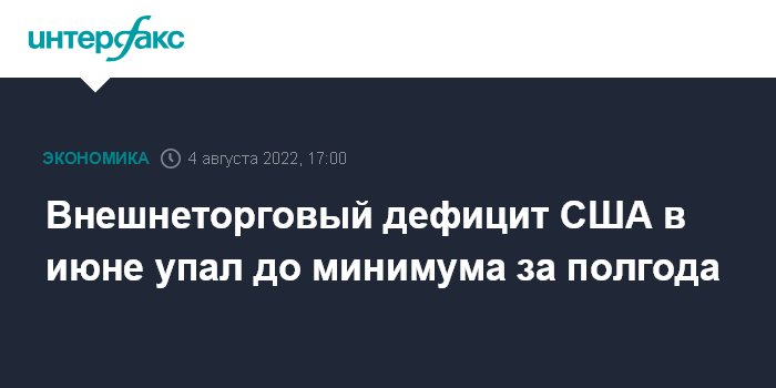 Внешнеторговый дефицит США в июне упал до минимума за полгода