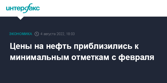 Москва. 4 августа. INTERFAX.RU - Цены на нефть перешли к снижению в ходе торгов в четверг после первоначального роста и приблизились к минимальным отметкам с февраля.