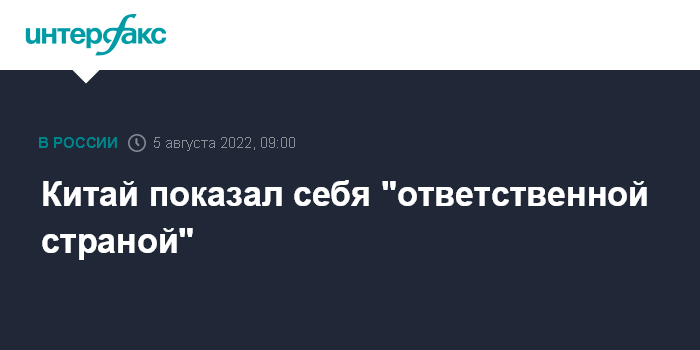 - То, что Китай не поддался на провокацию, конечно, отрадно. Хотя серьезные эксперты (в том числе и ваш покорный слуга) как раз и утверждали, что Китай не поддастся. Мы исходили из того, что им сейчас это совсем не надо (накануне ХХ съезда КПК – ИФ), и того, что текущее обострение совсем не вяжется с их политической (внешнеполитической в том числе) традицией и стратегией "игры вдолгую". Но утверждать, что Китай таким образом "спас мир" - это явный комплимент современному китайскому руководству. Китай просто повел себя как серьезный игрок и показал себя как та самая "ответственная страна", стать которой его призывали в свое время западные "партнеры".