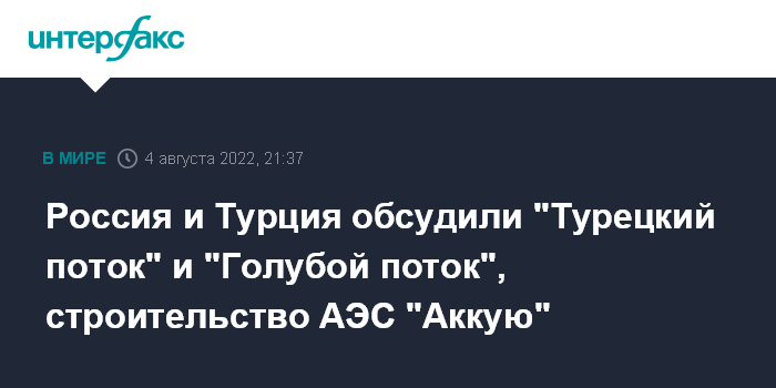В частности, они обсудили сотрудничество в сфере энергетики: работу газопроводов "Турецкий поток" и "Голубой поток", а также строительство АЭС "Аккую". Еще они затронули вопросы транспортной логистики, промышленности, сельского хозяйства и туризма.
