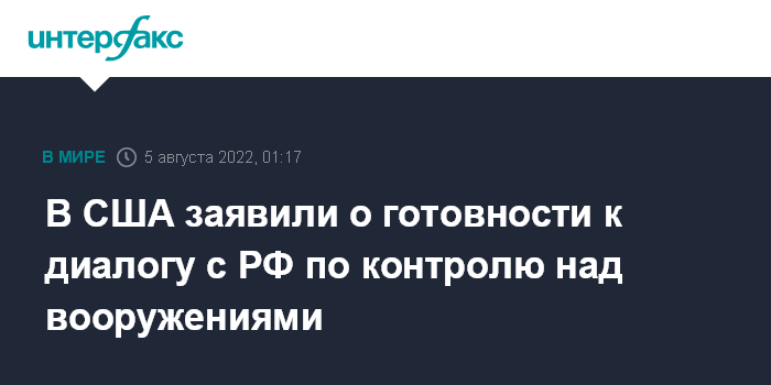 В США заявили о готовности к диалогу с РФ по контролю над вооружениями