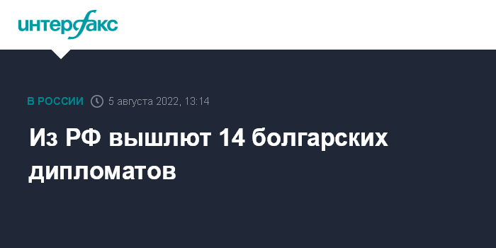 Москва. 5 августа. INTERFAX.RU - Россия в качестве ответной меры высылает 14 сотрудников диппредставительства и консульских учреждений Болгарии в РФ, сообщили в пятницу в МИД России.