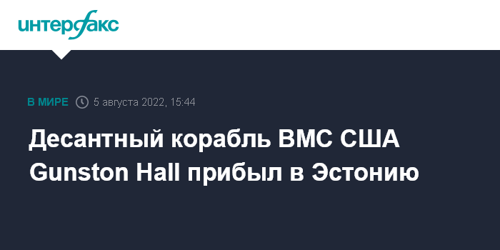 Москва. 5 августа. INTERFAX.RU - В Эстонию в пятницу с визитом прибыл доковый десантный корабль ВМС США USS Gunston Hall.