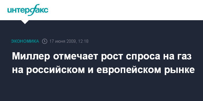 Москва. 17 июня. INTERFAX.RU - Спрос на газ как на российском, так и на европейском рынке начинает расти, сообщил глава "Газпрома" Алексей Миллер на встрече с премьер-министром РФ Владимиром Путиным.