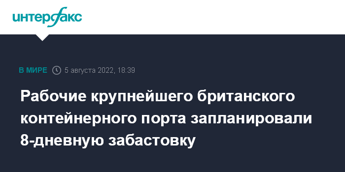 Рабочие крупнейшего британского контейнерного порта запланировали 8-дневную забастовку