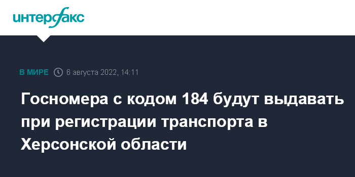 Госномера с кодом 184 будут выдавать при регистрации транспорта в Херсонской области