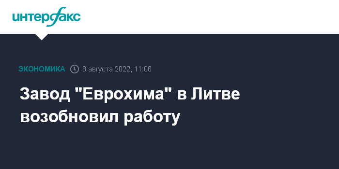 Москва. 8 августа. INTERFAX.RU - Литовский завод по производству удобрений Lifosa (входит в "Еврохим"), находящийся под контролем временного администратора, возобновляет работу после почти четырехмесячного перерыва, сообщила исполняющая обязанности гендиректора предприятия Регвита Ивановене.