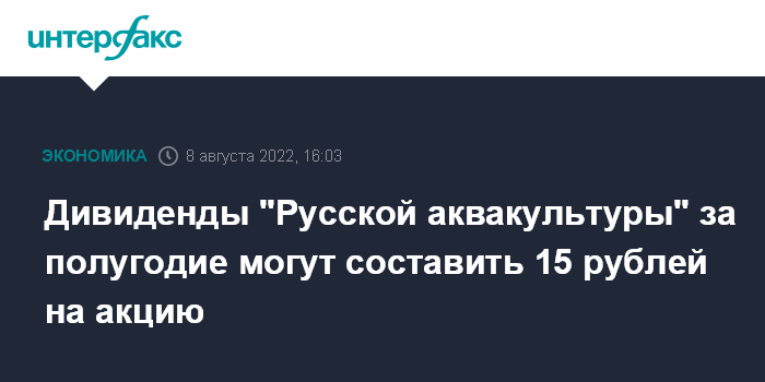 Дивиденды "Русской аквакультуры" за полугодие могут составить 15 рублей на акцию