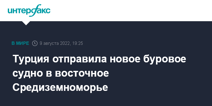Турция отправила новое буровое судно в восточное Средиземноморье