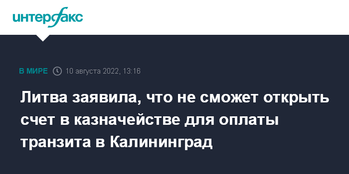 Литва заявила, что не сможет открыть счет в казначействе для оплаты транзита в Калининград