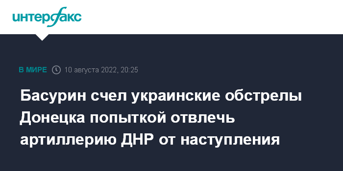 "Мы это (усилившиеся обстрелы Донецка - ИФ) связываем с тем, чтобы отвлечь наши силы и средства, в первую очередь, артиллерию от выполнения задач на линии соприкосновения. Противник считает, что, обстреливая черту города, мы будем вынуждены отвлекать свои артиллерийские силы для контрбатарейной борьбы, чтобы уменьшить давление от тех участков фронта, где происходит продвижение вперед", - сказал Басурин.