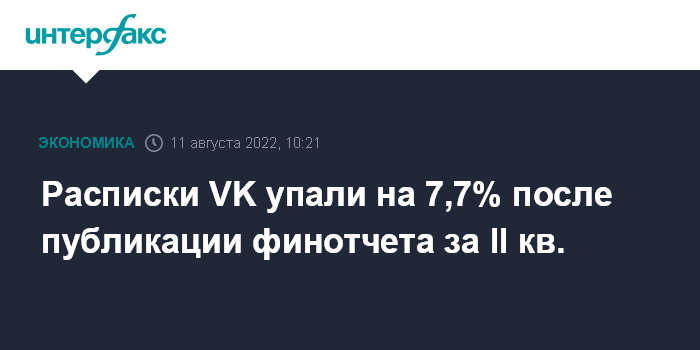 Расписки VK упали на 7,7% после публикации финотчета за II кв.