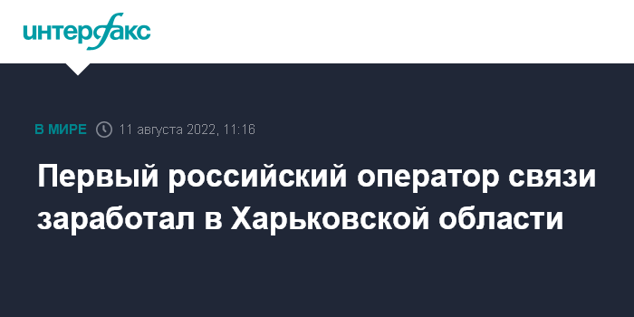 Москва. 11 августа. INTERFAX.RU - Первый российский оператор мобильной связи - "Мир телеком" - начал работать на подконтрольной РФ территории Харьковской области, сообщили в пресс-службе временной администрации региона в четверг.