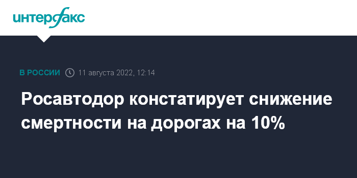 Москва. 11 августа. INTERFAX.RU - Глава Росавтодора Роман Новиков заявил о снижении на 10% смертности на российских дорогах в прошедшем полугодии относительно такого же периода прошлого года.