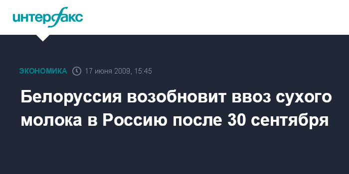 Белоруссия возобновит ввоз сухого молока в Россию после 30 сентября