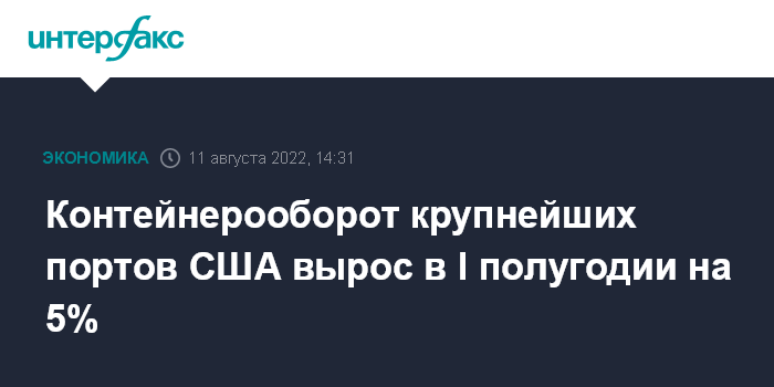 Москва. 11 августа. INTERFAX.RU - Объем грузовых контейнеров, обработанных девятью крупнейшими портами США, увеличился на 5% в первом полугодии 2022 года, сообщает MarketWatch со ссылкой на данные портовых администраций.
