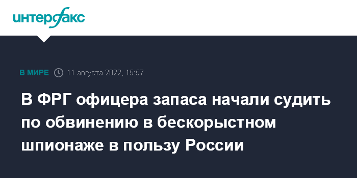 Москва. 11 августа. INTERFAX.RU - В Высшем земельном суде Дюссельдорфа начался суд над 65-летним офицером запаса бундесвера, которого обвиняют в шпионаже в пользу России, сообщает DPA.