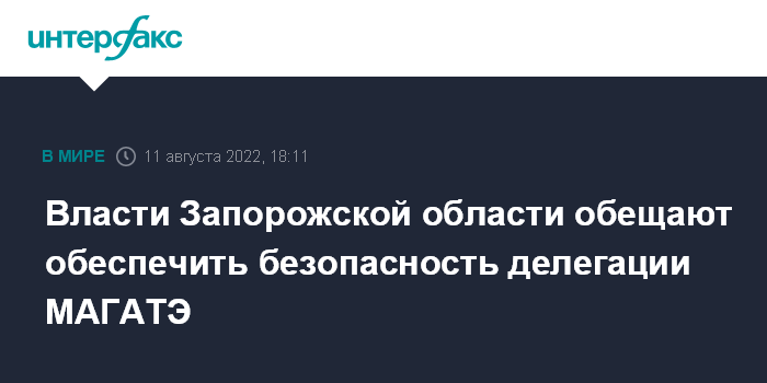 Москва. 11 августа. INTERFAX.RU - Глава временной администрации контролируемой РФ части Запорожской области Евгений Балицкий заявил, что власти постараются обеспечить безопасность представителей Международного агентства по атомной энергии (МАГАТЭ) в случае их визита на Запорожскую АЭС.