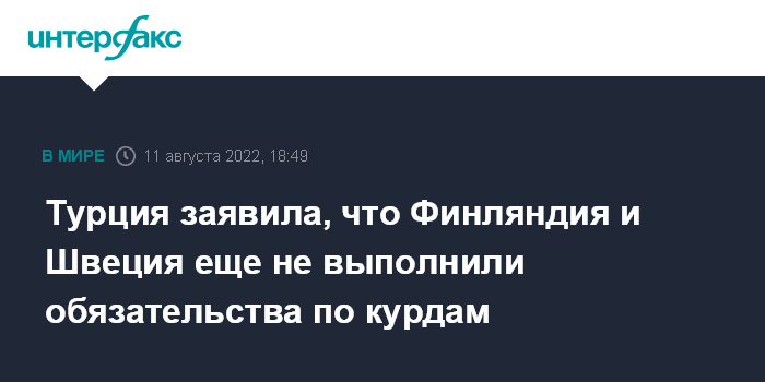 Москва. 11 августа. INTERFAX.RU - Швеция и Финляндия пока не выполняют обязательства, которые они взяли на себя для снятия возражений со стороны Анкары по поводу их вступление в НАТО, заявил в четверг глава турецкого МИД Мевлют Чавушоглу.
