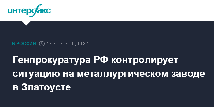 Генпрокуратура РФ контролирует ситуацию на металлургическом заводе в Златоусте