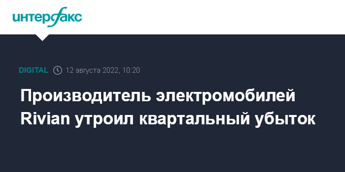 Москва. 12 августа. INTERFAX.RU - Американский производитель электромобилей Rivian Automotive Inc. увеличил чистый убыток во втором квартале в три раза и ухудшил его оценку по итогам всего 2022 года из-за сохраняющихся проблем в цепочках поставок и повышения расходов.