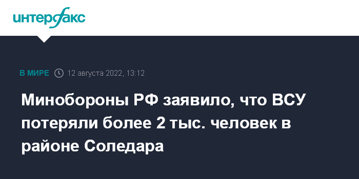 Москва. 12 августа. INTERFAX.RU - Более двух тысяч человек потеряли Вооружённые силы Украины (ВСУ), сообщил официальный представитель министерства обороны РФ Игорь Конашенков на брифинге в пятницу.