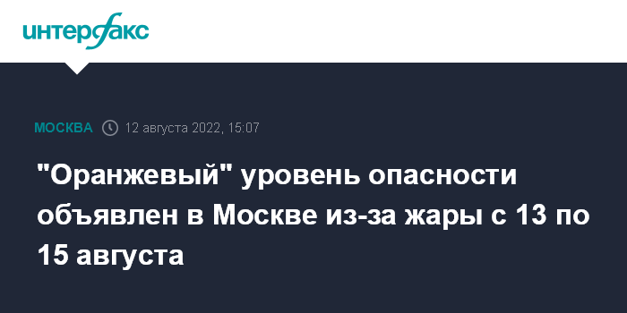 "Оранжевый" уровень опасности объявлен в Москве из-за жары с 13 по 15 августа