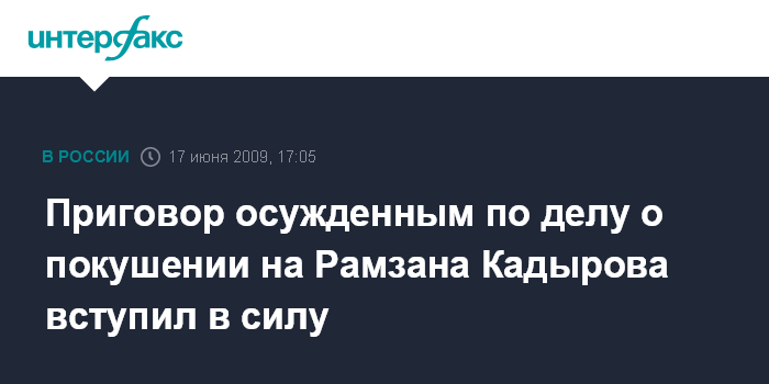 Москва. 17 июня. INTERFAX.RU - Верховный суд РФ оставил в силе приговор по делу о покушении на президента Чечни Рамзана Кадырова.