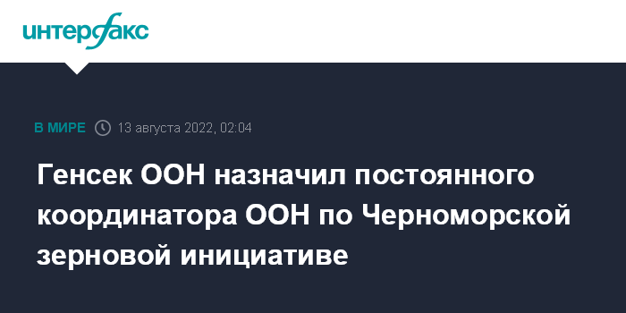 Москва. 13 августа. INTERFAX.RU - Генеральный секретарь ООН Антониу Гутерриш назначил суданца Амира Махмуда Абдуллу координатором Организации по Черноморской зерновой инициативе, говорится в сообщении пресс-службы ООН.