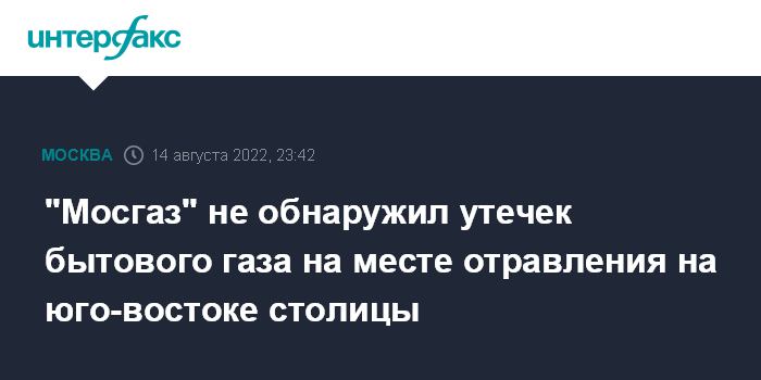 Москва. 14 августа. INTERFAX.RU - Сетевой газ не был причиной инцидента в многоквартирном доме на юго-востоке Москвы, сообщается в телеграм-канале столичного комплекса городского хозяйства в воскресенье.