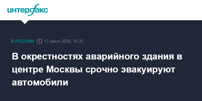 В окрестностях аварийного здания в центре Москвы срочно эвакуируют автомобили