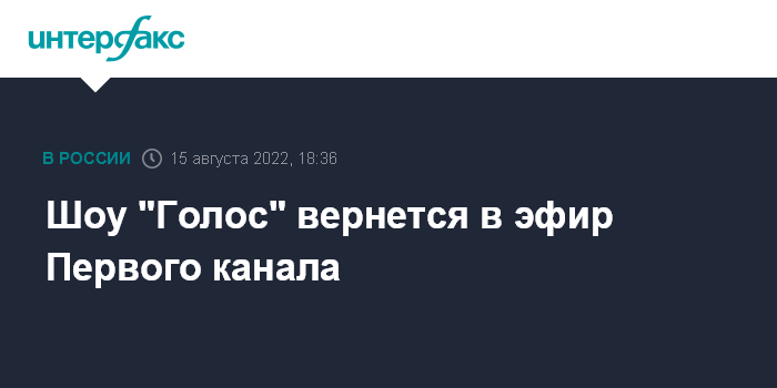 Москва. 15 августа. INTERFAX.RU - Первый канал сообщил о возвращении в сетку вещания проектов "Голос", "Голос.Дети" и "Голос.60+".