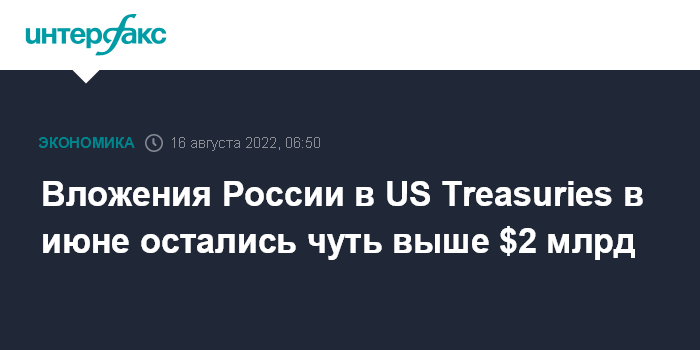 Согласно данным американского Минфина, на конец июня РФ принадлежали долгосрочные госбумаги на сумму $4 млн против $3 млн в мае. Вложения в краткосрочные бонды составили $2,001 млрд, как и месяцем ранее.