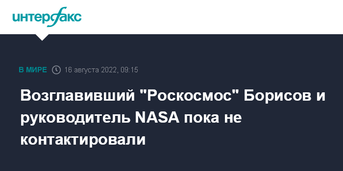 Москва. 16 августа. INTERFAX.RU - Гендиректор "Роскосмоса" Юрий Борисов пока не контактировал с главой NASA Биллом Нельсоном, при этом общение между космическими агентствами РФ и США ведется регулярно, сообщил "Интерфаксу" замглавы госкорпорации по международному сотрудничеству Сергей Савельев.