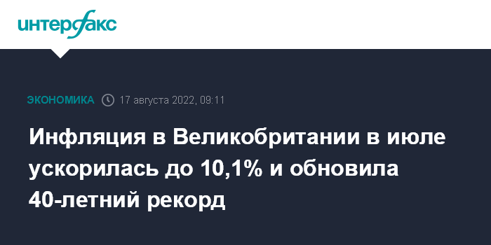 Инфляция в Великобритании в июле ускорилась до 10,1% и обновила 40-летний рекорд