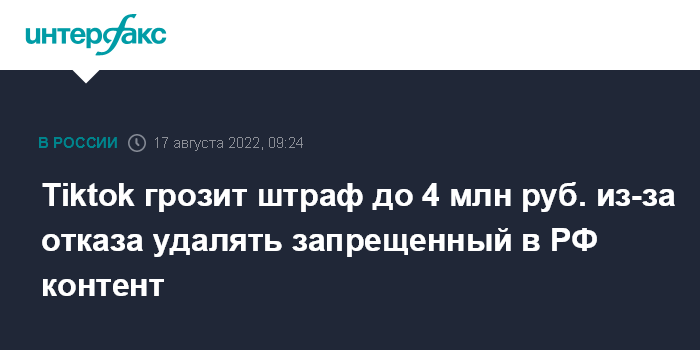 Таким образом, если Tiktok признают виновным в нарушении российского законодательства, компании грозит штраф в размере до 4 млн рублей.