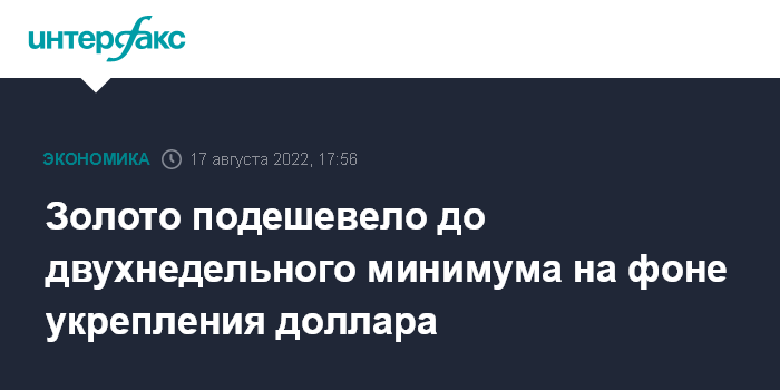 Москва. 17 августа. INTERFAX.RU - Цены на золото снижаются на торгах в среду из-за роста курса доллара и доходности гособлигаций США. Котировки декабрьских контрактов на Нью-Йоркской товарной бирже (NYMEX) к 17:38 по Москве снизились на 0,46% - до $1781,5 за унцию, минимума с 3 августа.