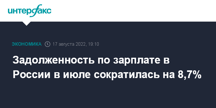 Задолженность по зарплате в России в июле сократилась на 8,7%