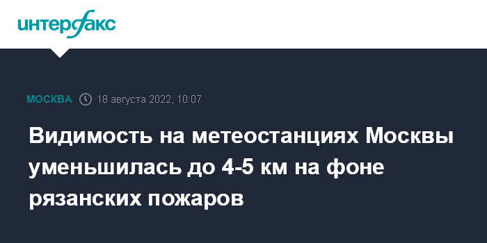 Видимость на метеостанциях Москвы уменьшилась до 4-5 км на фоне рязанских пожаров