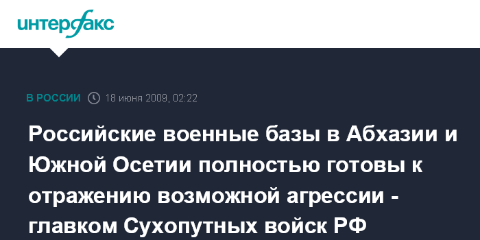 Российские военные базы в Абхазии и Южной Осетии полностью готовы к отражению возможной агрессии - главком Сухопутных войск РФ
