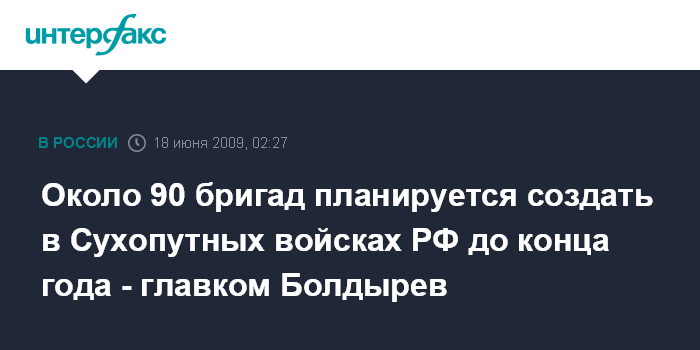 "Одновременно с оптимизацией Сухопутные войска переходят к новой организационной структуре. Заменяется четырехзвенная система управления войсками: военный округ - армия - дивизия - полк на трехзвенную: военный округ - армия - бригада", - сказал В.Болдырев.