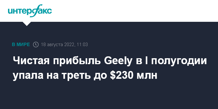 Чистая прибыль Geely в I полугодии упала на треть до $230 млн