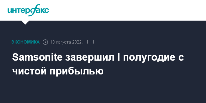 Москва. 18 августа. INTERFAX.RU - Крупнейший в мире производитель чемоданов Samsonite International SA вышел на прибыльный уровень в первом полугодии 2022 года, при этом его выручка подскочила на 59%.